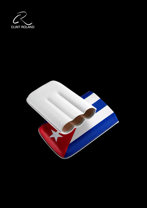 The colourful Guevara Cuban flagged premium cigar gift is certainly an eye catching cigar accessory set. The cigar leather case can hold up to 3 cigars comfortably and the set includes a V-shaped cutter for precision cutting of the cigar and a blue flamed butane lighter, and a concealed cigar punch found at base of the lighter. All the products are made from zinc alloy that ensures durability and strength.