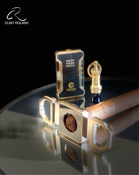 Para algunos hombres, pocas cosas representan más el lujo que un exquisito juego de regalo de puros presidenciales de FIBRA DE CARBONO. Este juego de regalo de puros presidenciales es perfecto para los amantes de los puros porque contiene todo lo que podrían desear: dos boquillas para encendedores, un cortador de puros, un cenicero, un cortador de puros y una elegante tijera para puros, junto con un perforador de puros (no uno, sino dos para cubrir todos los tamaños de puros), un portapuros, un soporte para puros y un tubo para puros e incluso un lujoso cortador de puros de escritorio.
