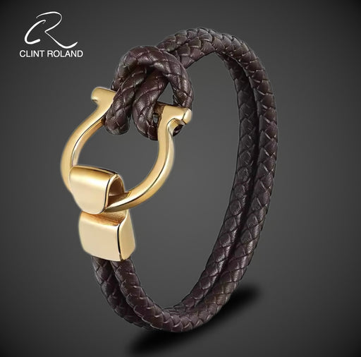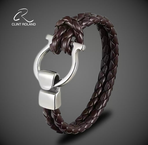 Clint RolandIncontestablement tendance et élégant, un bracelet en cuir tressé de qualité avec un fermoir en acier à motifs d'inspiration équestre peut être po...